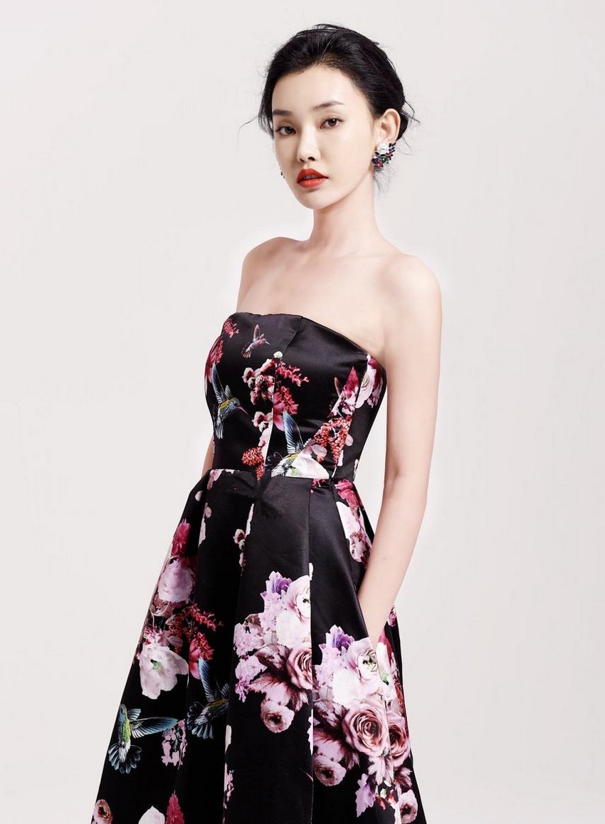 童菲,这位以其清新气质和灵动表演为人所知的演员,在此次拍摄中展现出了不同于荧幕形象的恬静与柔美。她身着的抹胸长裙,以淡雅底色铺陈,其上点缀着色彩柔和、形态各异的花朵图案,仿佛将整个花园的盎然生机穿在了身上。抹胸的设计恰到好处地展现了其优雅的肩颈线条与锁骨,既不失含蓄,又平添了几分轻盈的性感。
